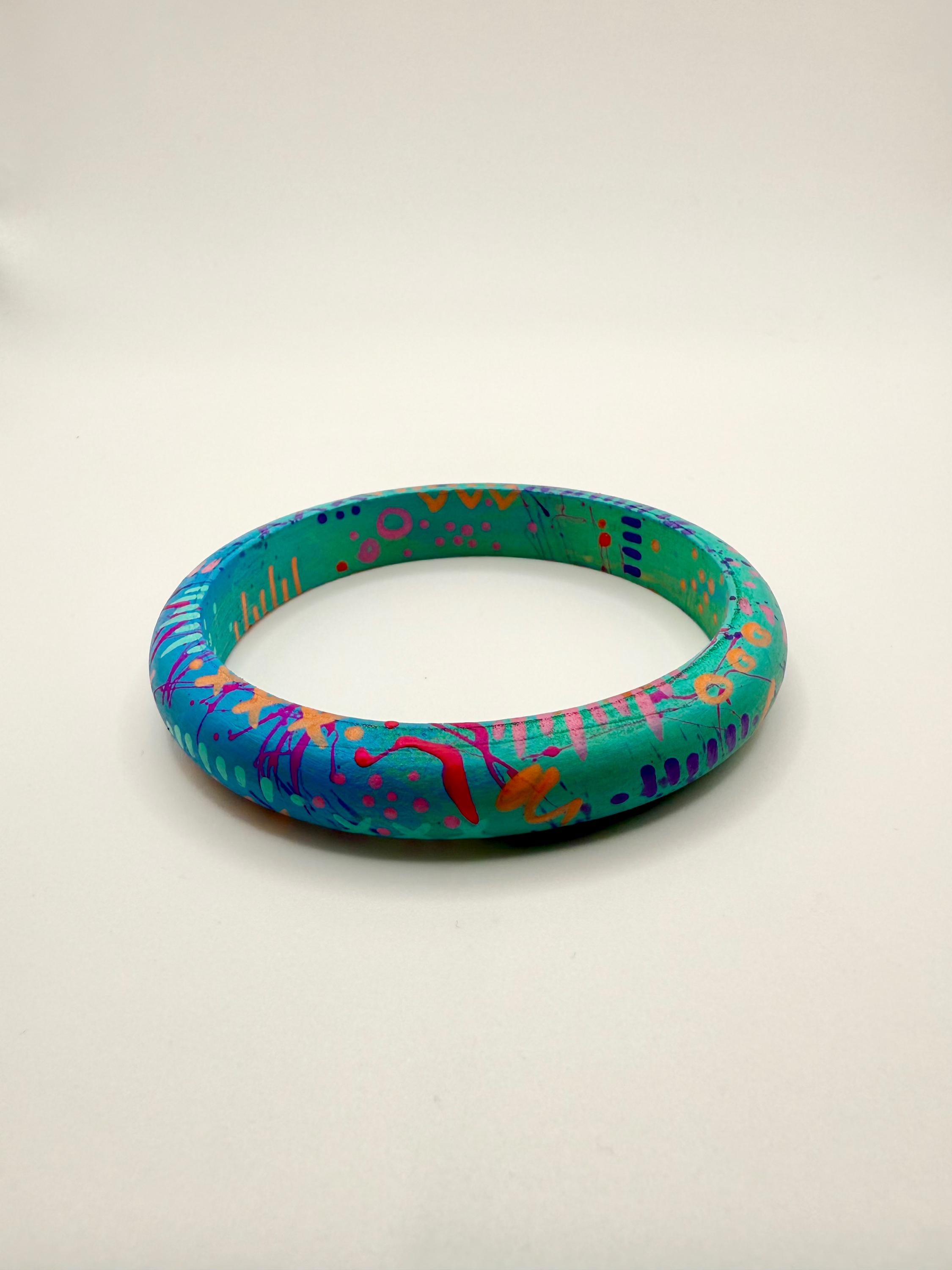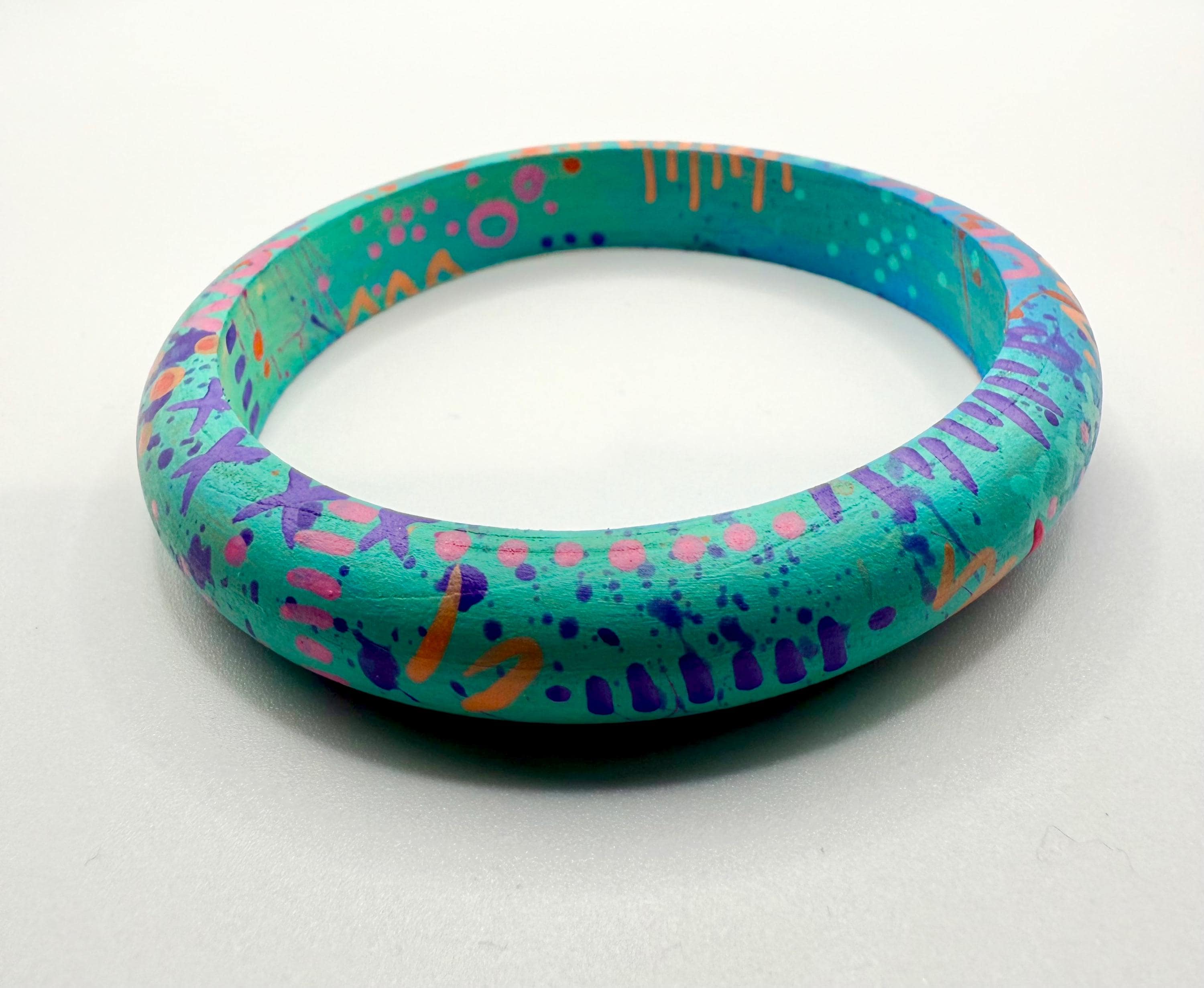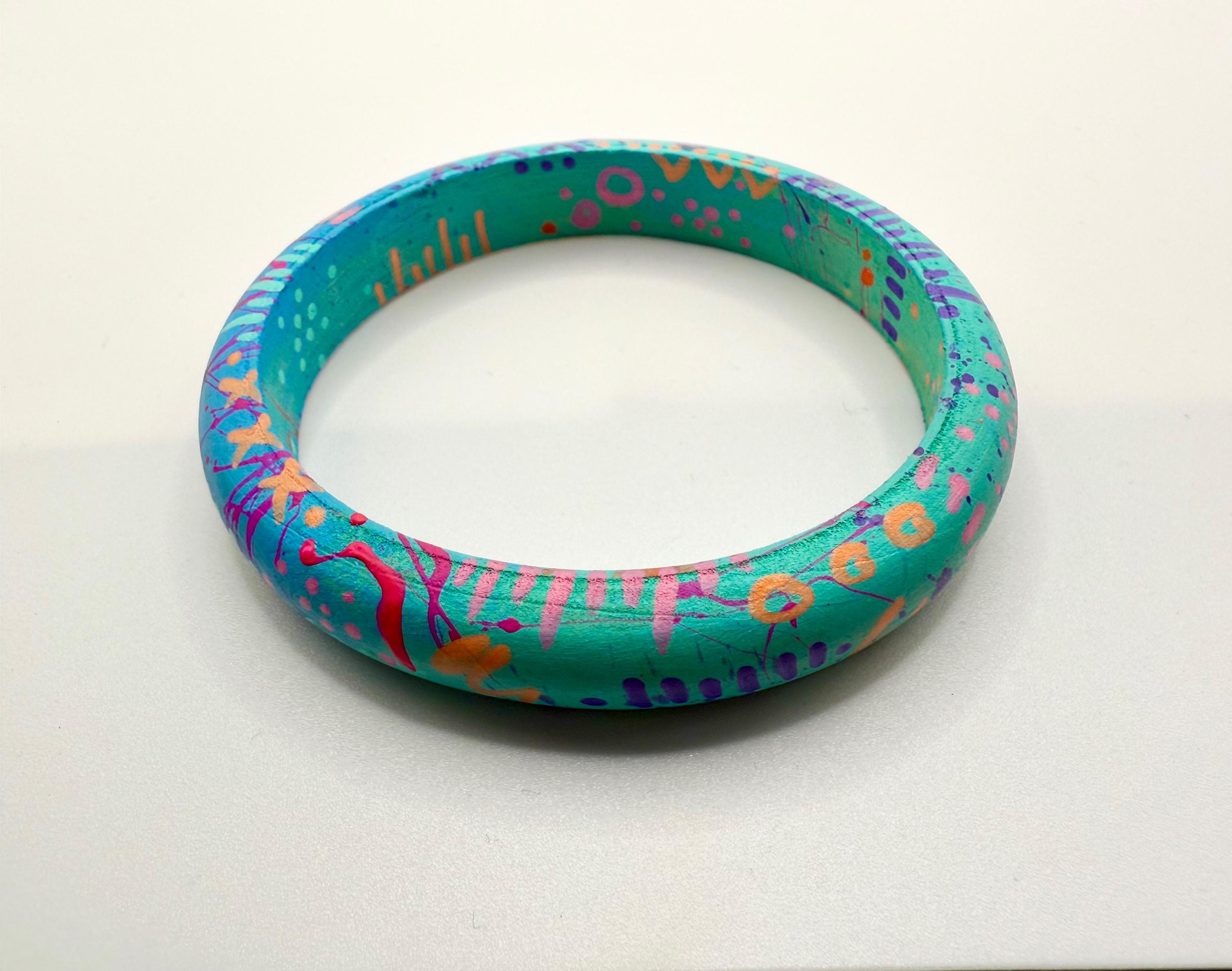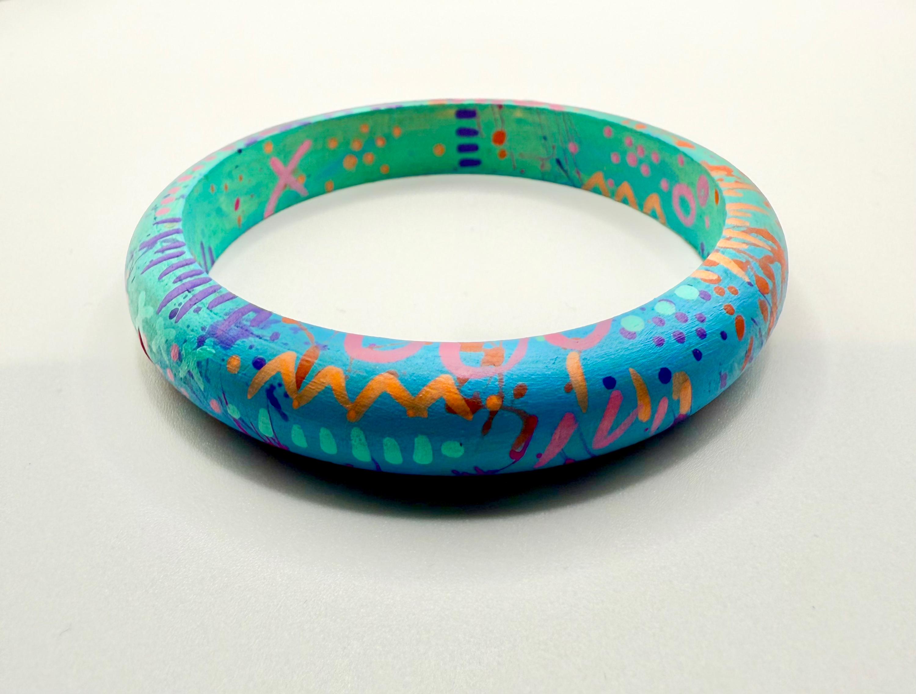Hand painted wood bangle bracelet - each bracelet is layered with a multi-step process and finished with a matte protective sealant. Each bracelet is one of a kind, please allow some slight variances in design, pattern and color.