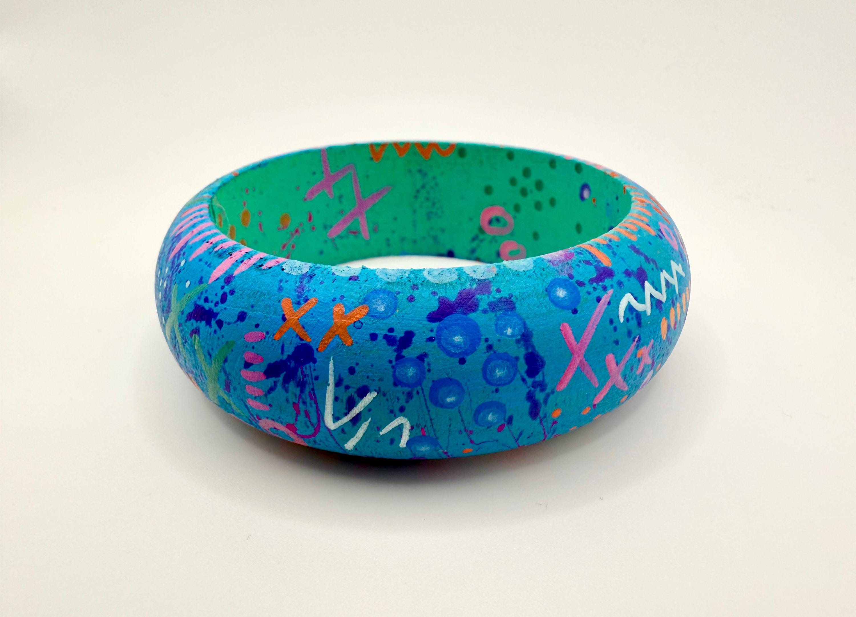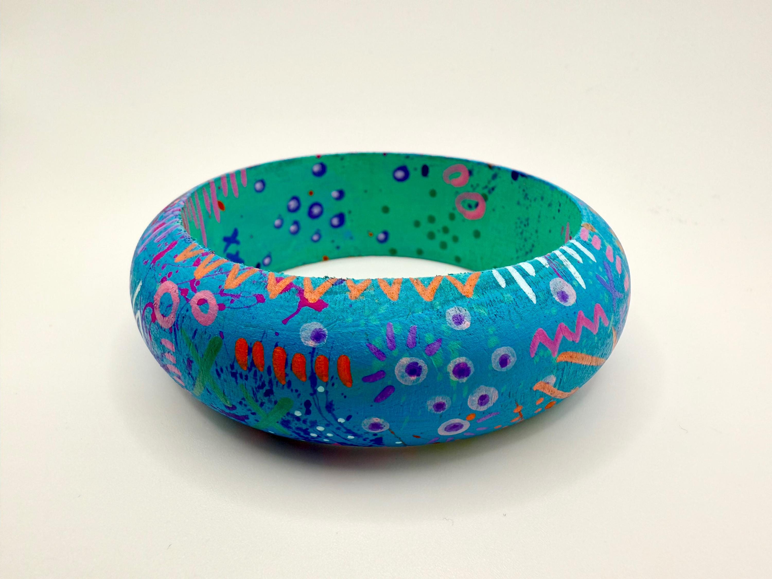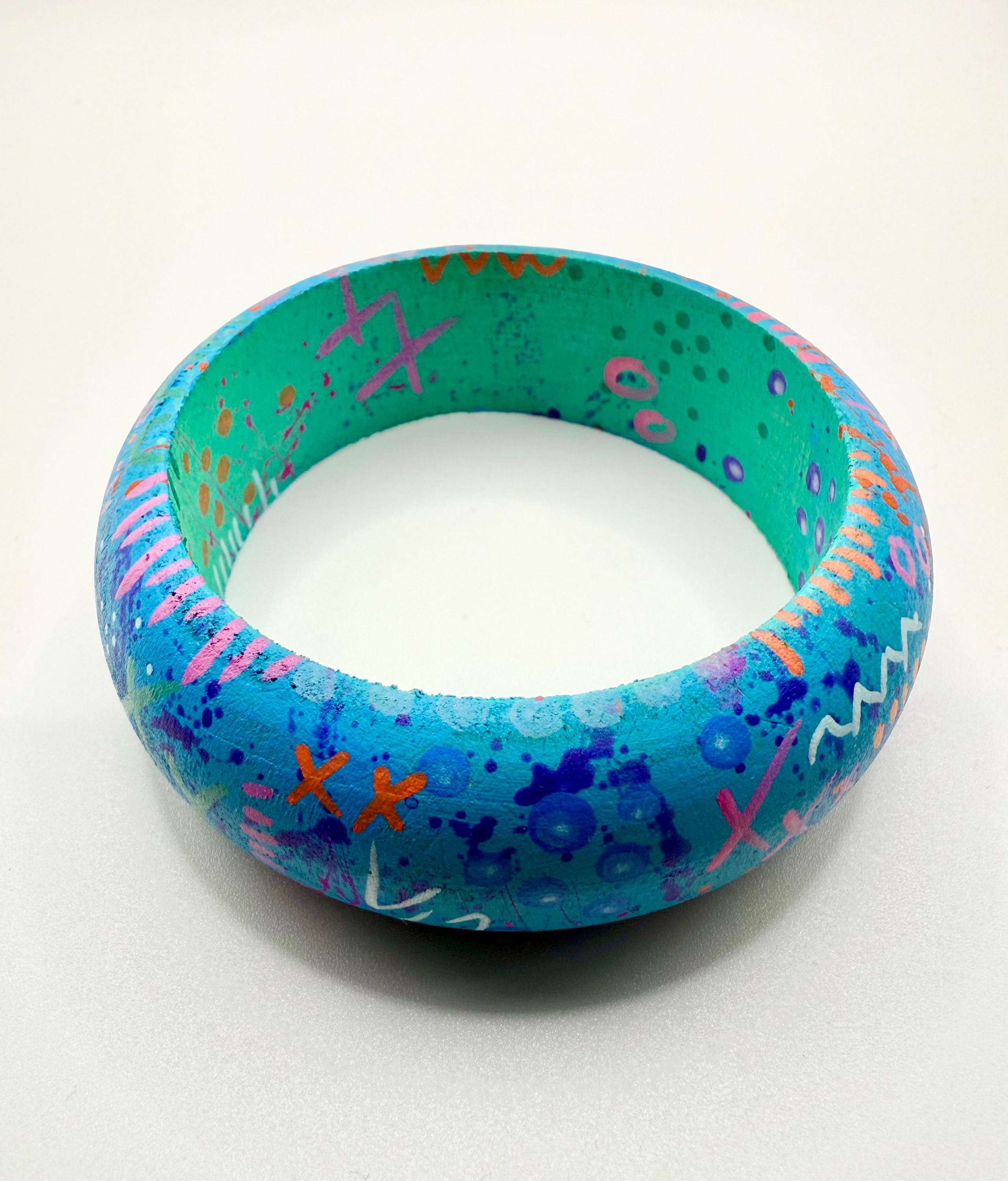 Hand painted wood bangle bracelet - each bracelet is layered with a multi-step process and finished with a matte protective sealant. Each bracelet is one of a kind, please allow some slight variances in design, pattern and color.